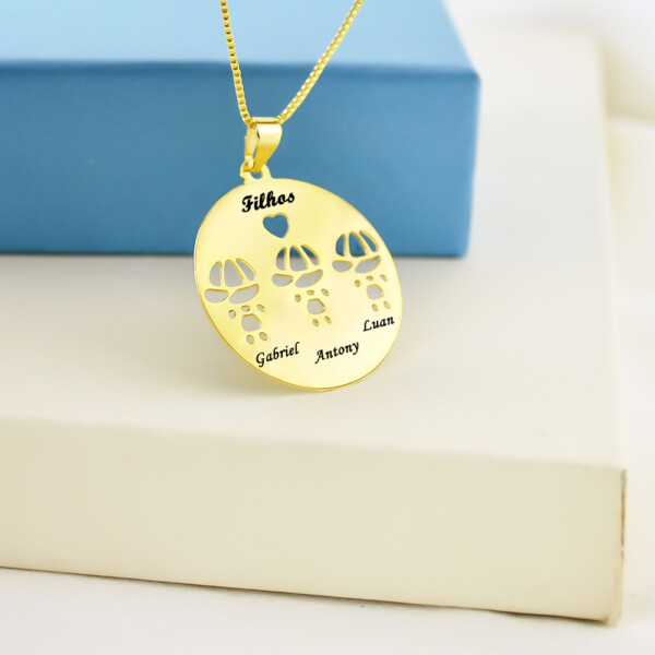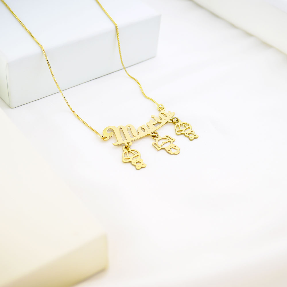 Colar 3 Crianças Filhos, Netos, Afilhados c/ Nome, Banho