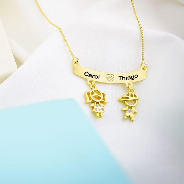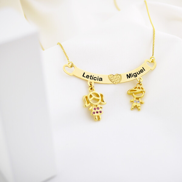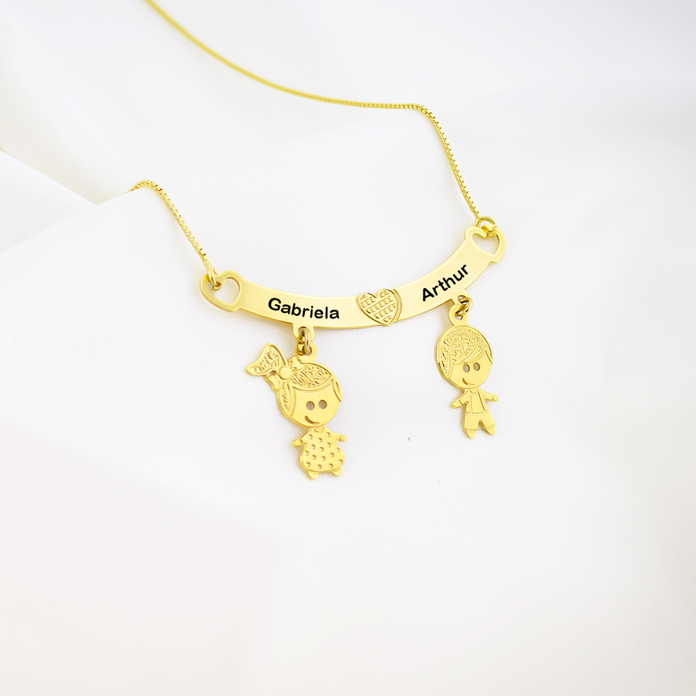 Colar Canga de Filhos com Nome Personalizado, Banhado