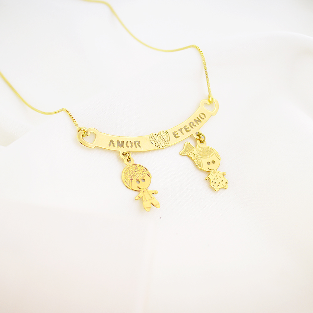 Colar Canga Filhos Amor Eterno, Por encomenda, Banhado a ouro 18k