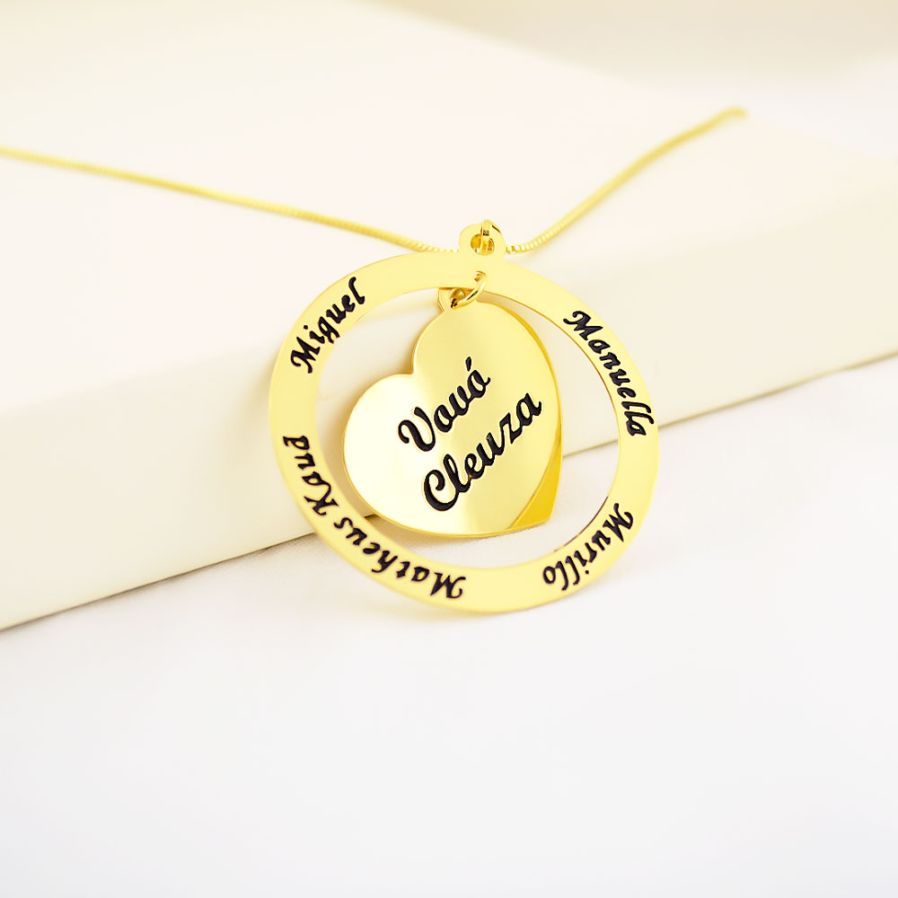 Colar Arco e Coração, Personalizado Vovó e Netos, Banhado