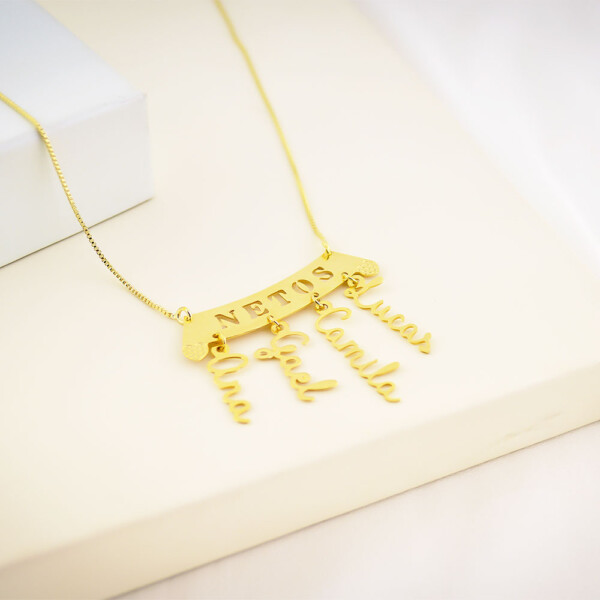 Colar Canga Netos, com Nomes Pendurados, Banhado a Ouro 18k