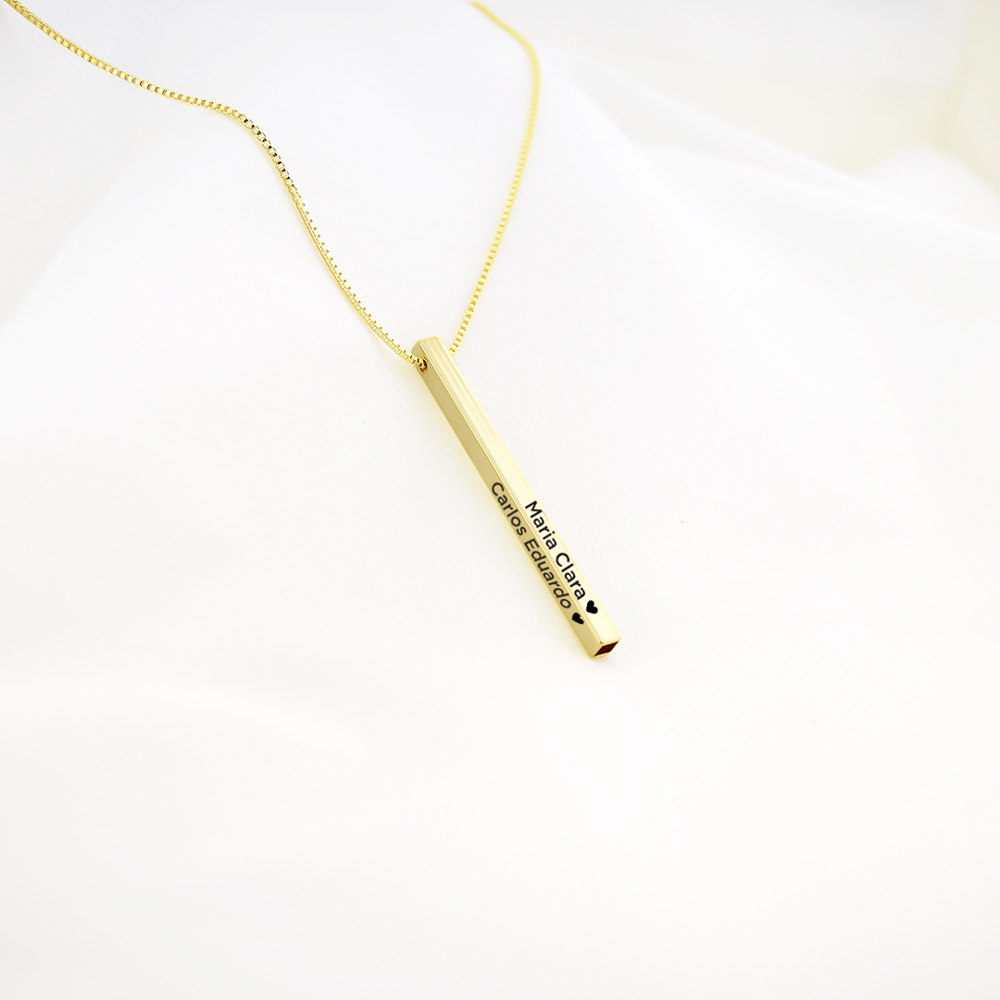 Colar Barra 3D Personalizado com Nome, Banhado a Ouro/Prata