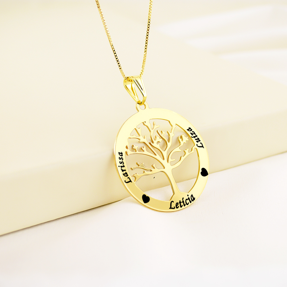 Colar Árvore da Vida com Corações Personalizado, Banhado