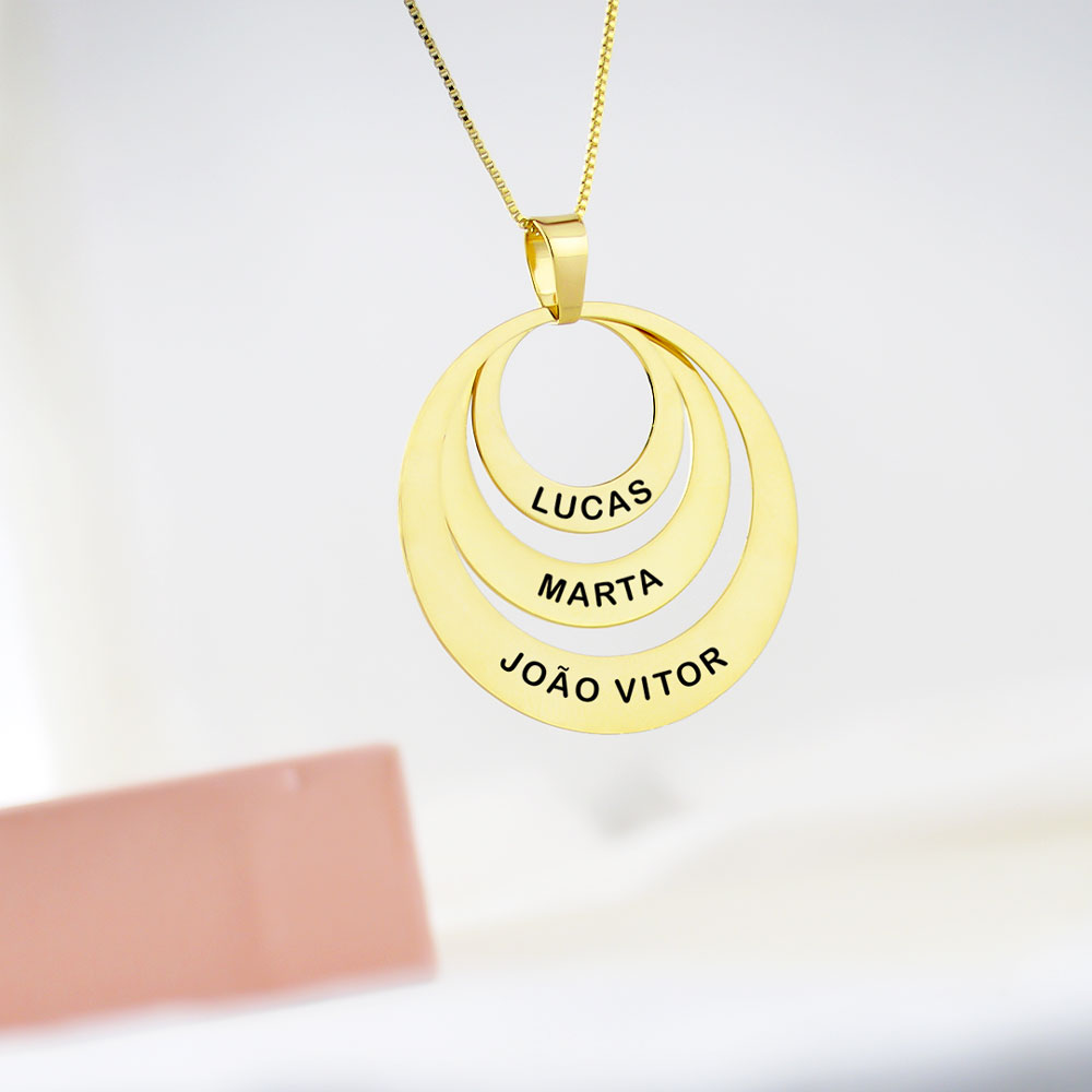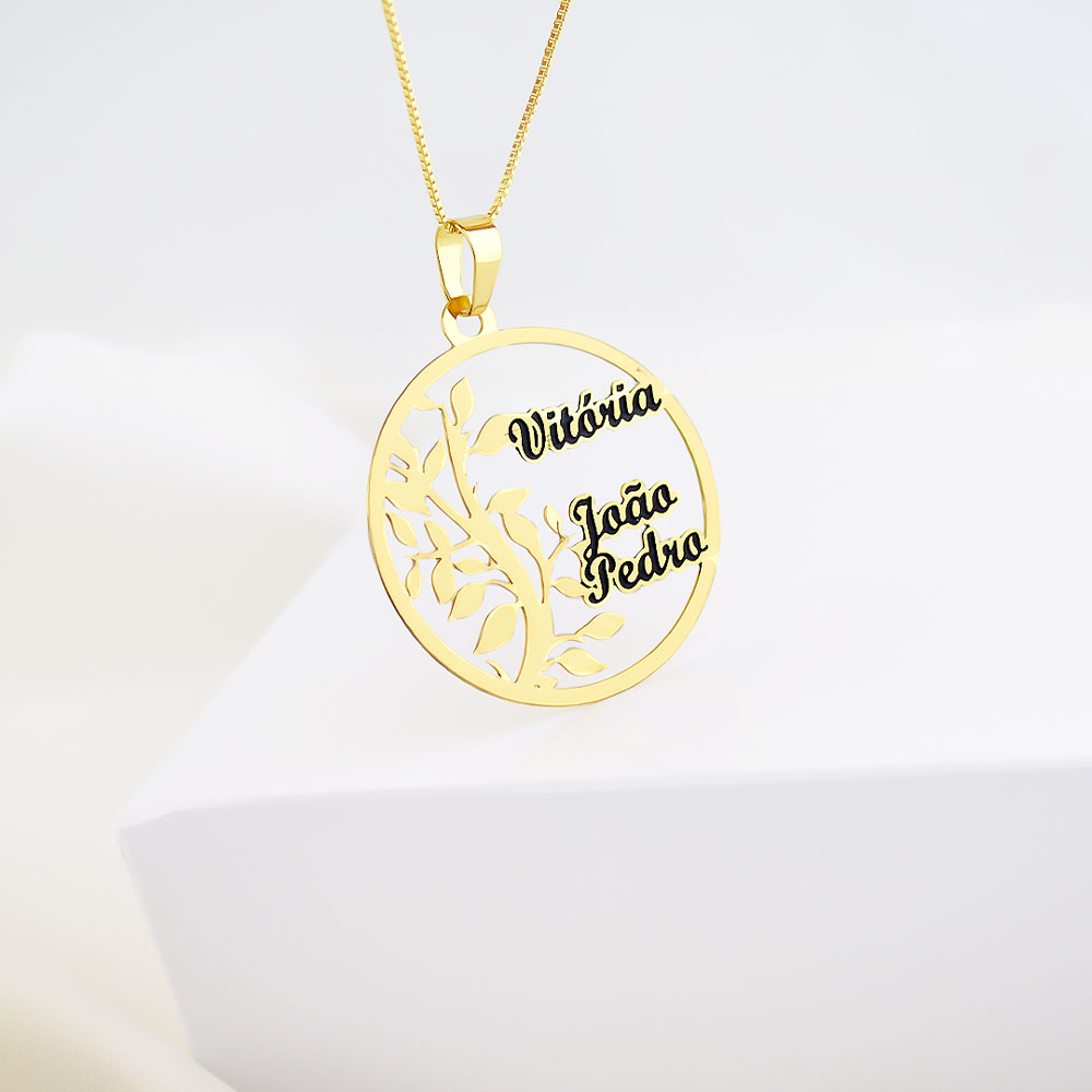 Colar Arvore da Vida, com Nome Personalizado, Banhado á Ouro