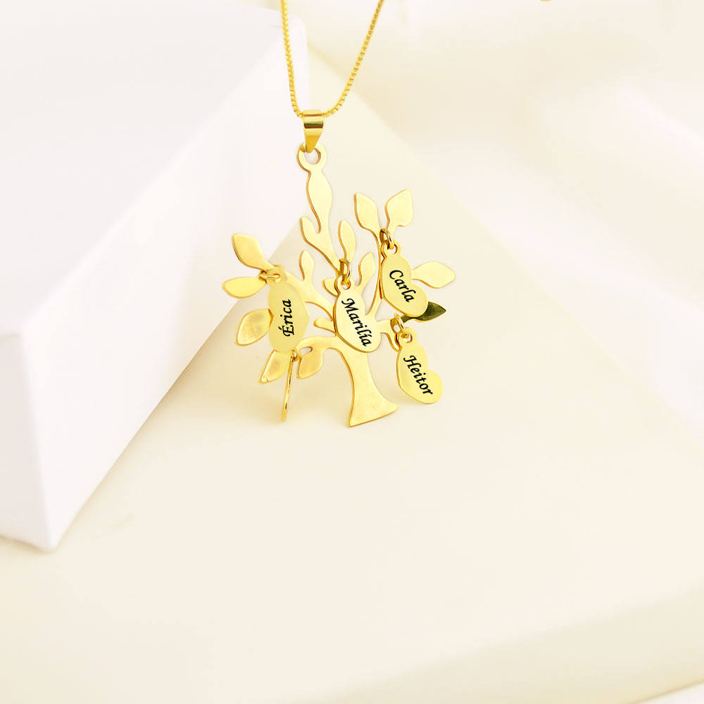 Colar Árvore da Vida, com Nome Personalizado, Banhado