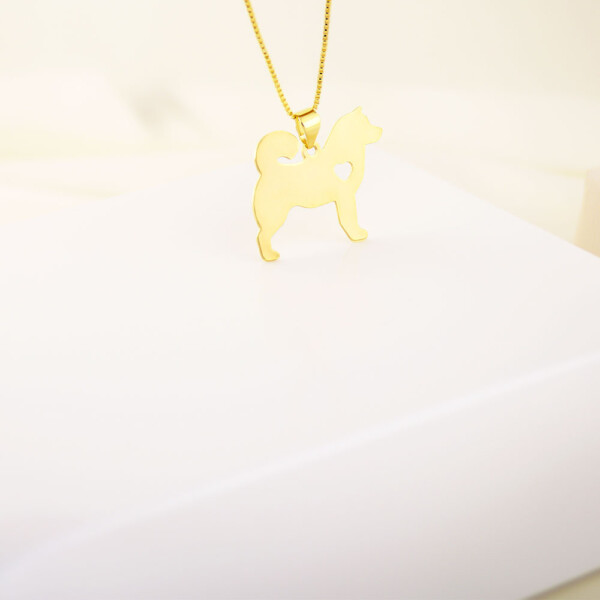 Colar Cachorro de Lado com Coração Vazado, Banhado á Ouro