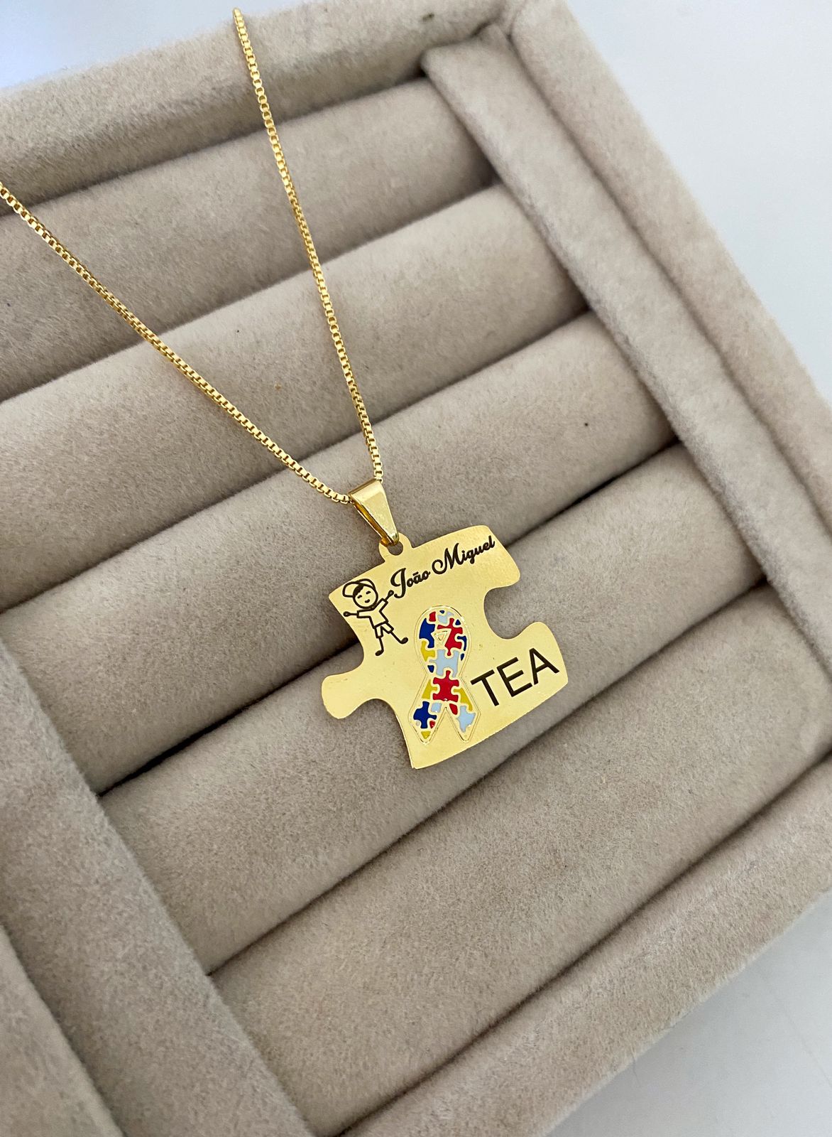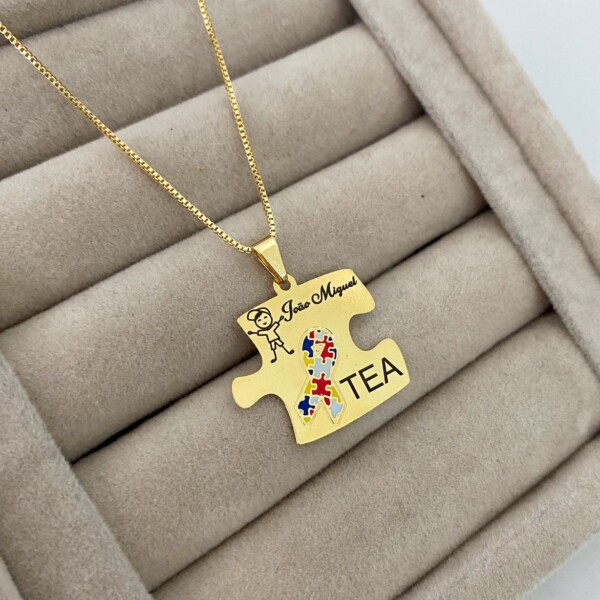 Colar Autismo, Quebra-Cabeça Personalizado com Nome, Banhado
