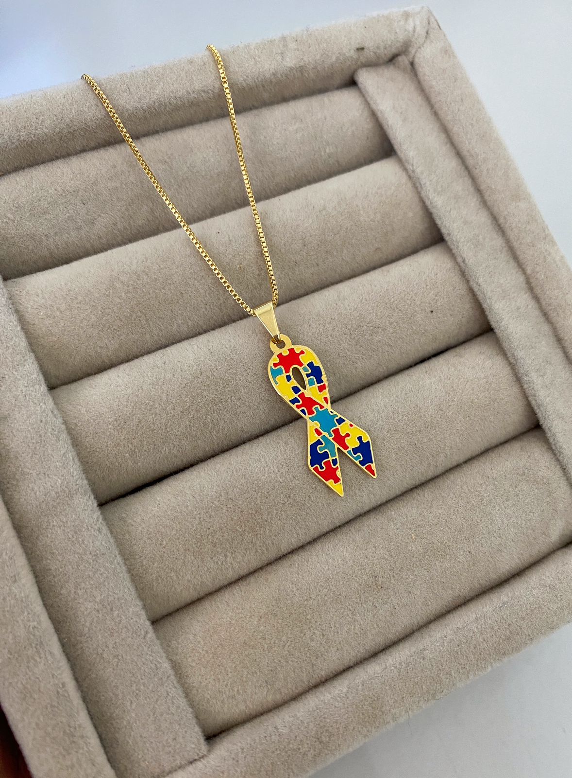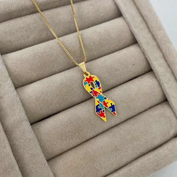 Colar Autismo TEA, Laço, Banhado a Ouro