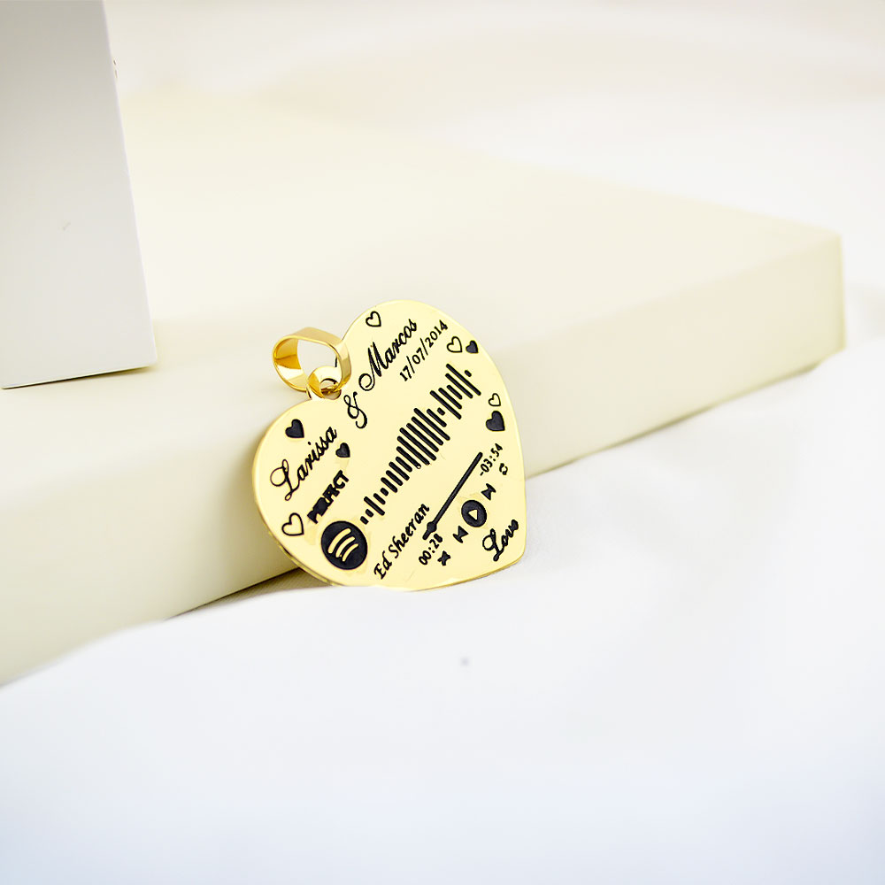 Pingente de Coração Spotify/ Música e Foto, Banhado a Ouro