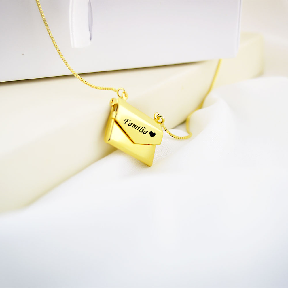 Colar Relicário de Carta com Foto Personalizado, Banhado