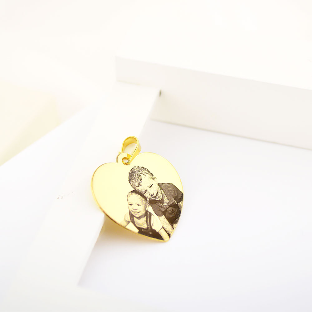 Pingente de Coração, Personalizado com Foto Gravação Banhado