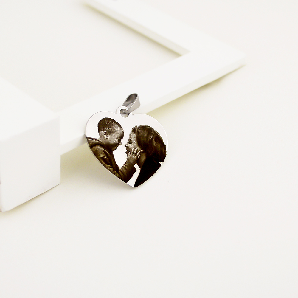 Pingente Inox de Coração, Personalizado com Foto Gravação.