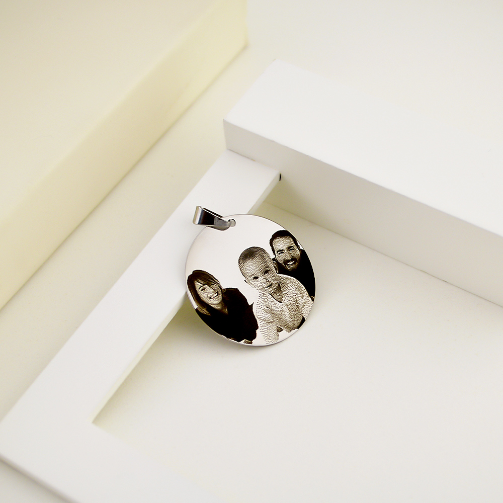 Colar Redondo, Personalizado com Foto Gravação, Aço Inox