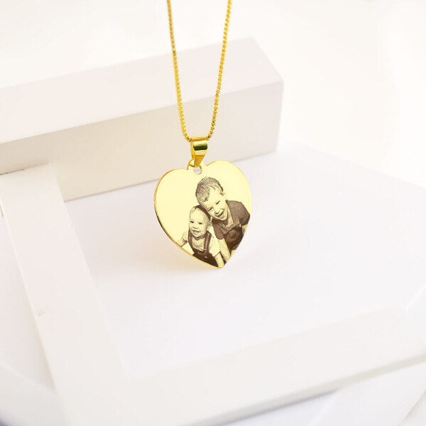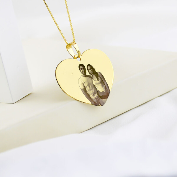 Colar de Coração, Personalizado com Foto Gravação, Banhado