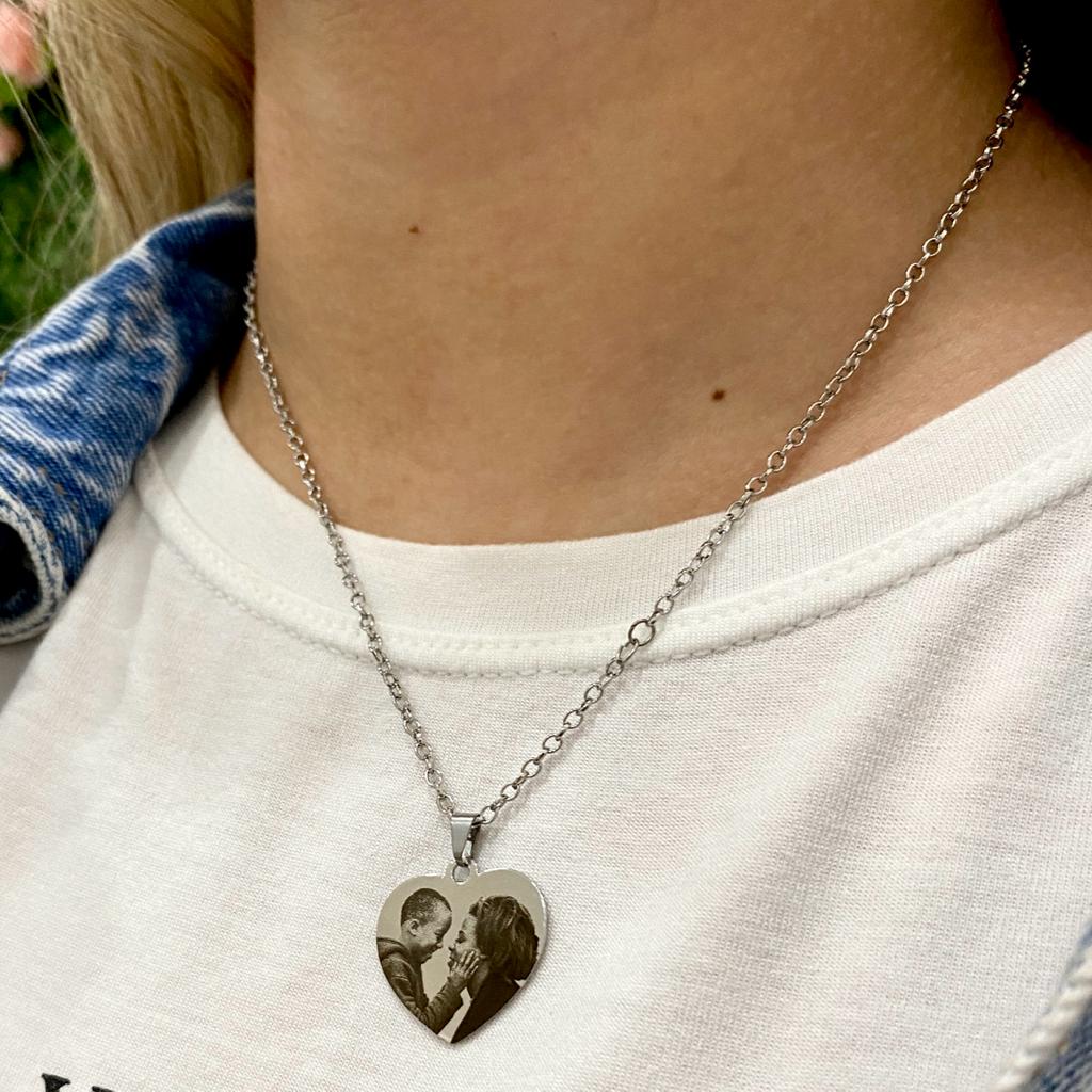 Colar Inox de Coração, Personalizado com Foto Gravação.