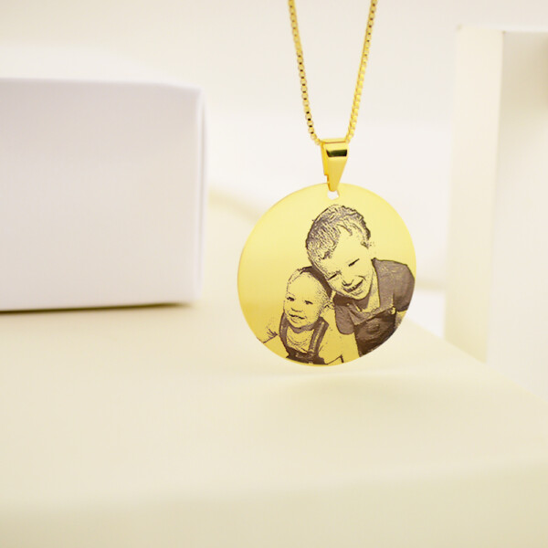 Colar Redondo Personalizado com Foto, Gravação a Laser, Banhado a Ouro