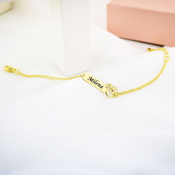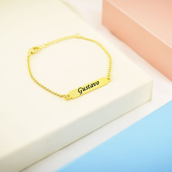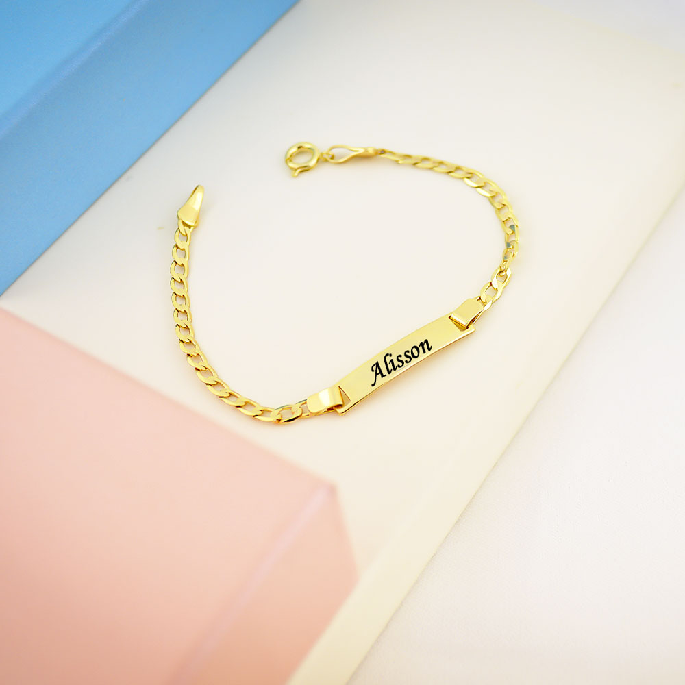 Pulseira Infantil Placa Lisa Personalizada com Nome, Banhada