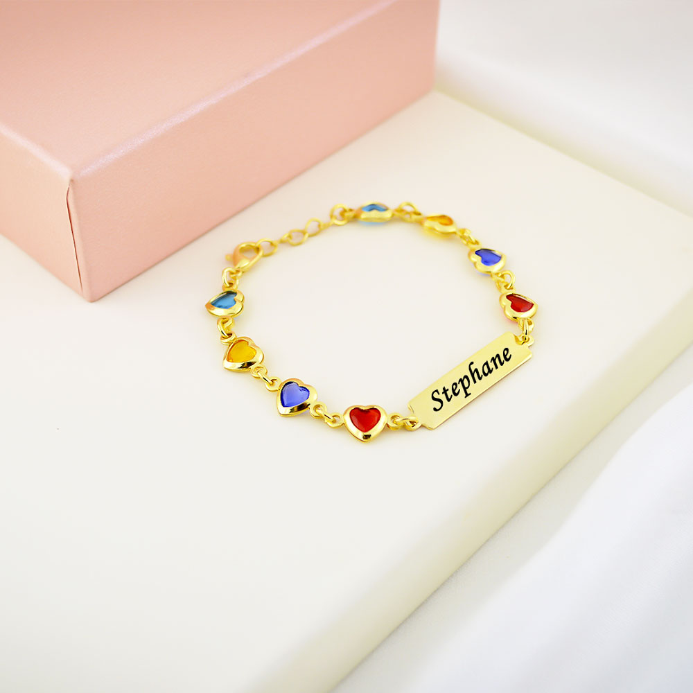 Pulseira Infantil Colorida com Nome Gravado, Banhado a Ouro