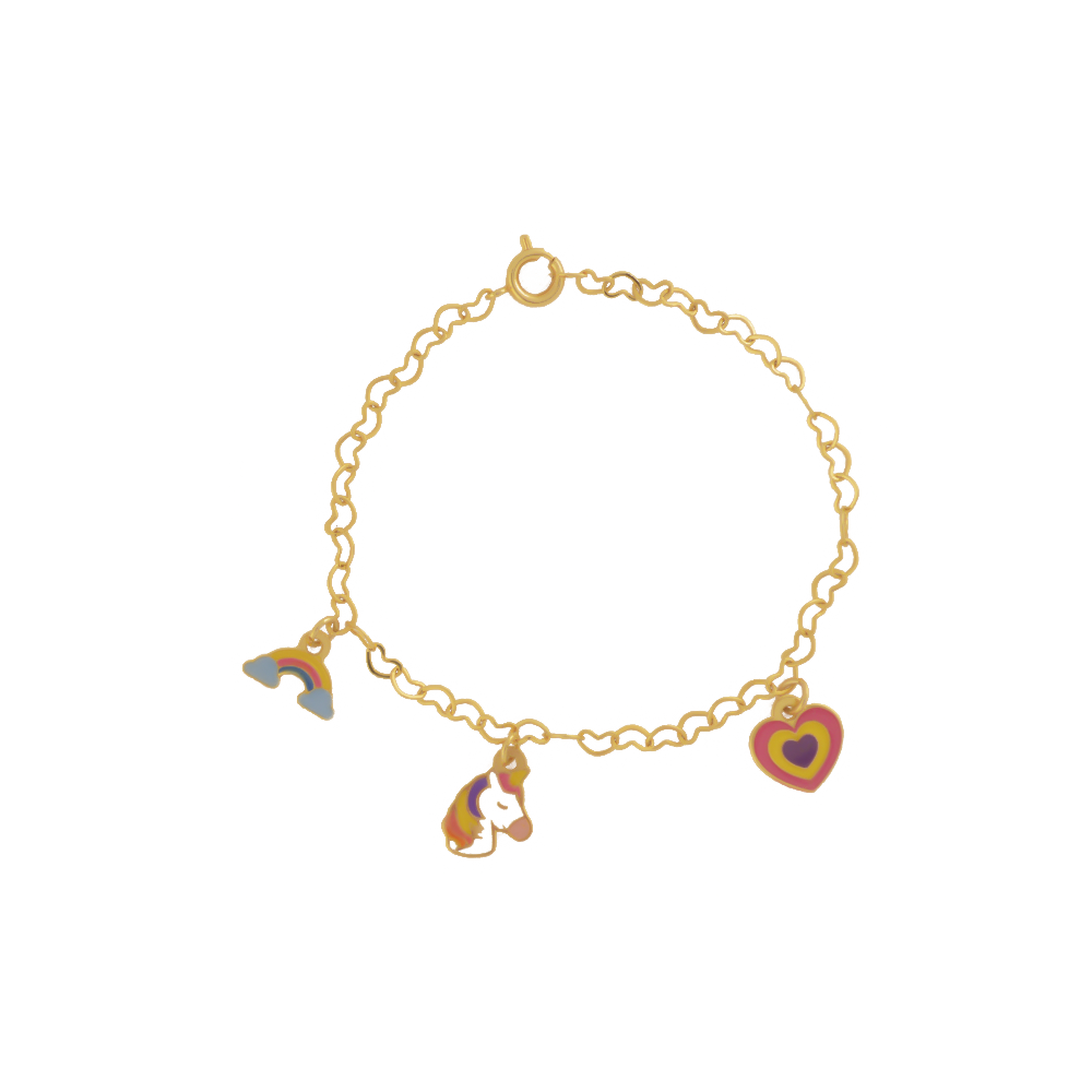 Pulseira Infantil Unicórnio com Pingentes, Banhado a Ouro