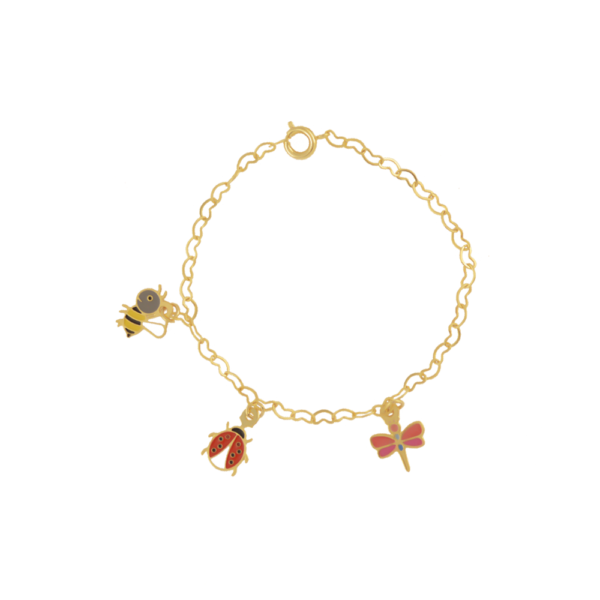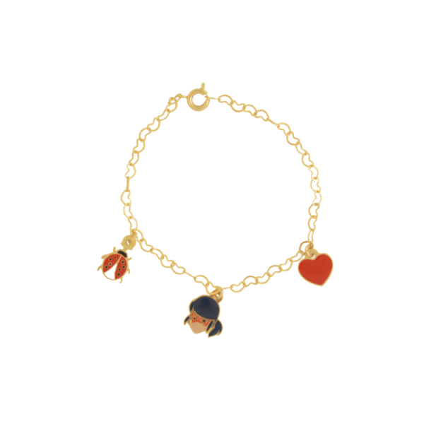 Pulseira Infantil Joaninha com Pingentes, Banhado a Ouro