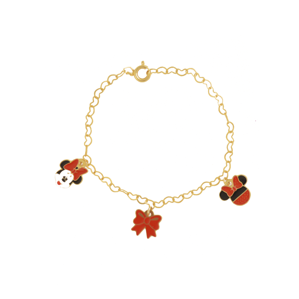 Pulseira Infantil Minnie com Pingentes, Banhado a Ouro