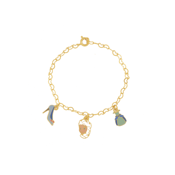 Pulseira Infantil Frozen com Pingentes, Banhado a Ouro