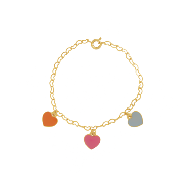 Pulseira Infantil de Coração com Pingentes, Banhado a Ouro