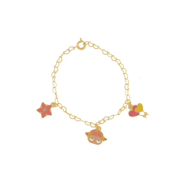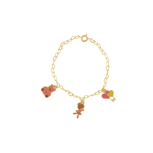 Pulseira Infantil Bailarina com Pingentes, Banhado a Ouro