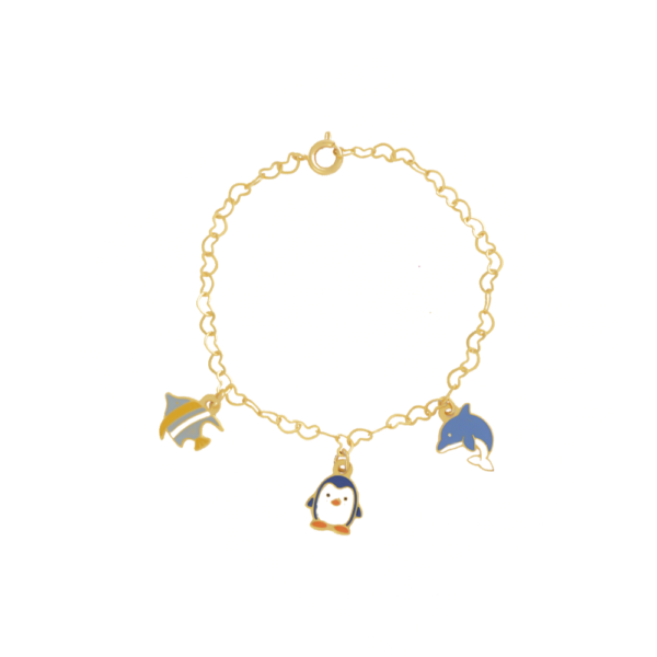 Pulseira Infantil Mar com Pingentes, Banhado a Ouro