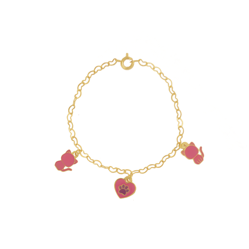Pulseira Infantil Gatinho com Pingentes, Banhado a Ouro