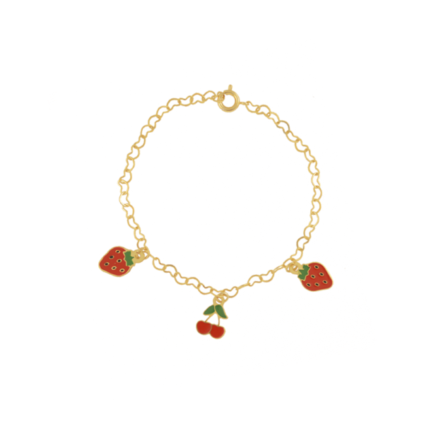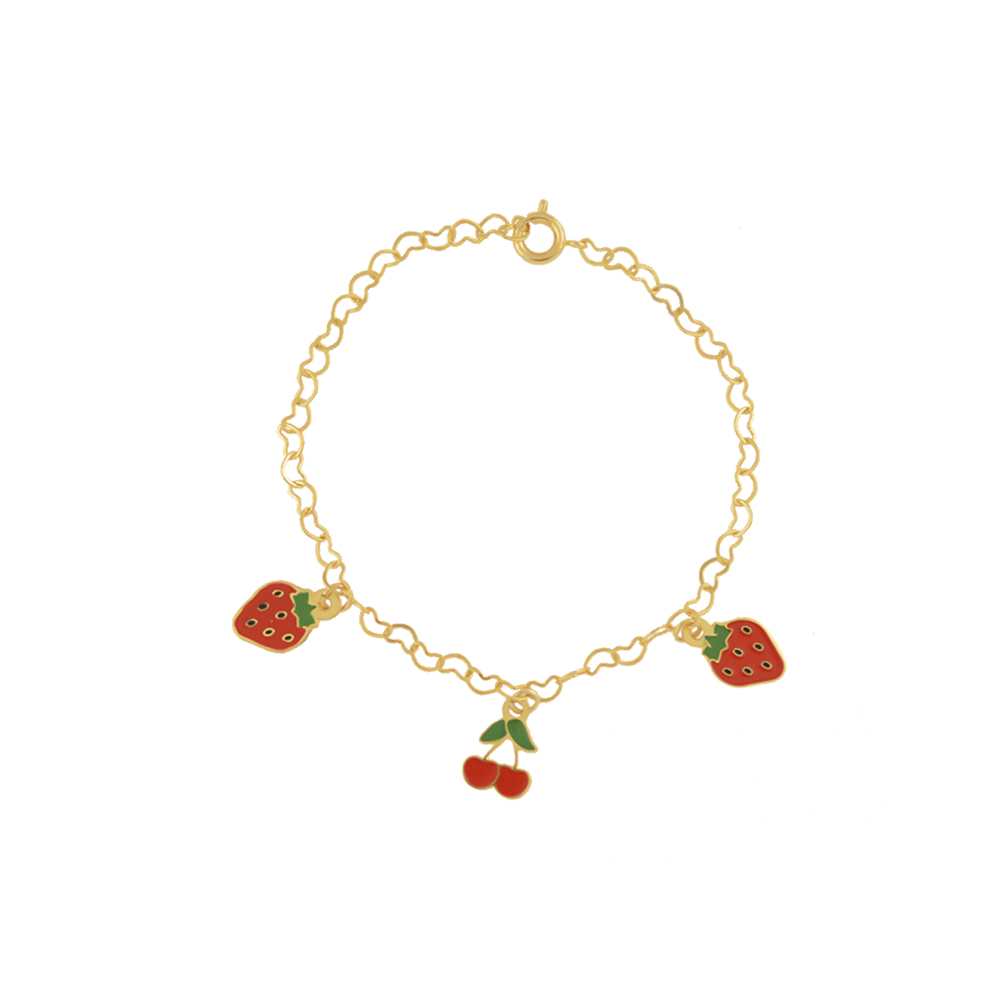 Pulseira Infantil Fruta com Pingentes, Banhado a Ouro Cor:Dourado