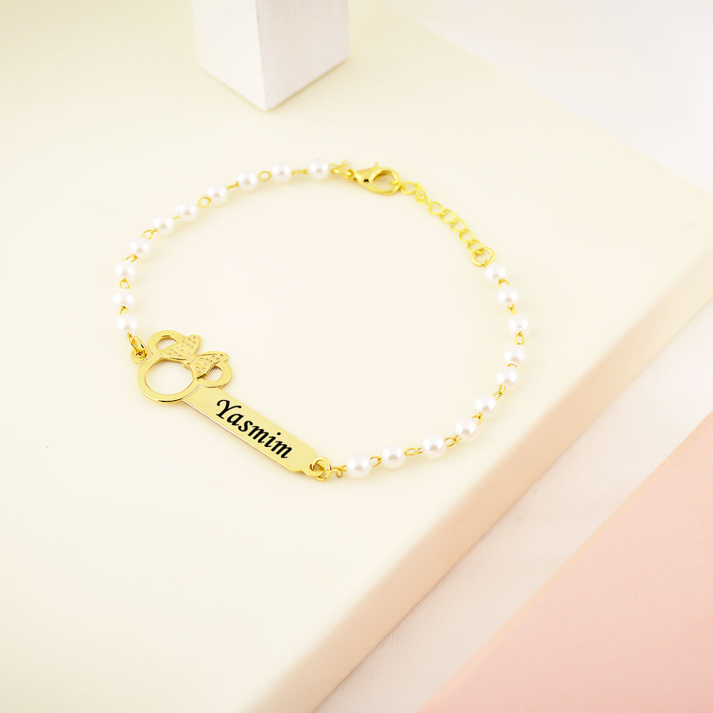 Pulseira Infantil de Pérola, Minnie Vazada, Banhado