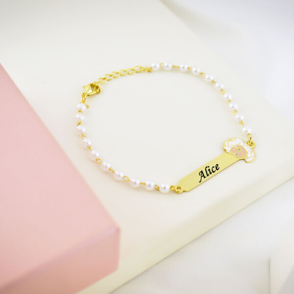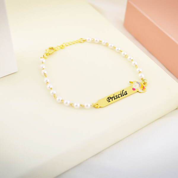 Pulseira Infantil de Pérola, Unicórnio com Resina, Banhado