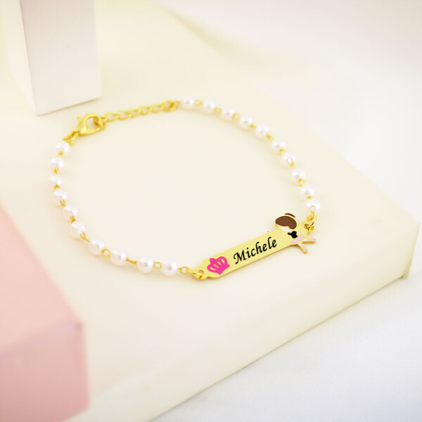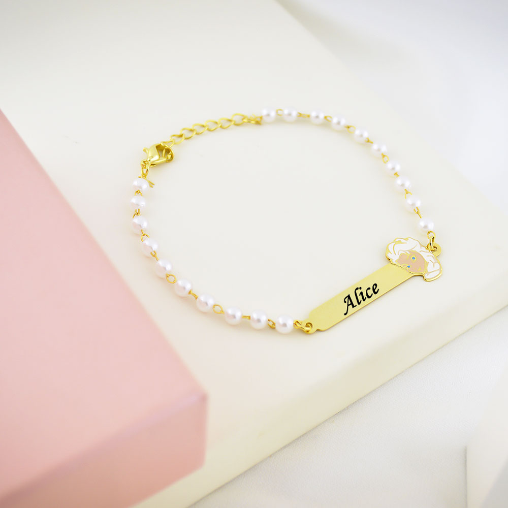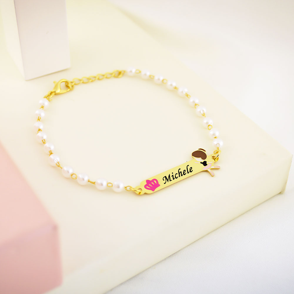 Pulseira Infantil de Pérola, Bailarina com Resina, Banhado