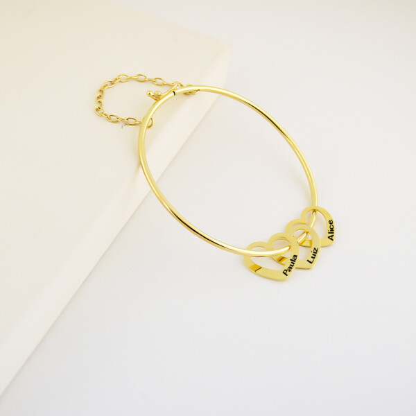 Bracelete com Corações, Personalizado com Nome, Banhado a Ouro