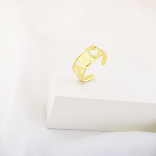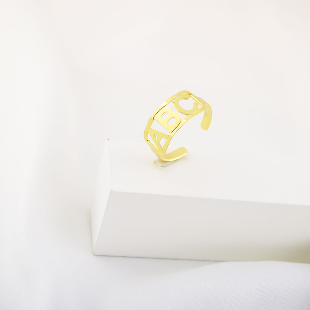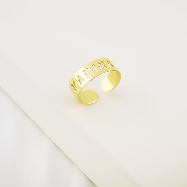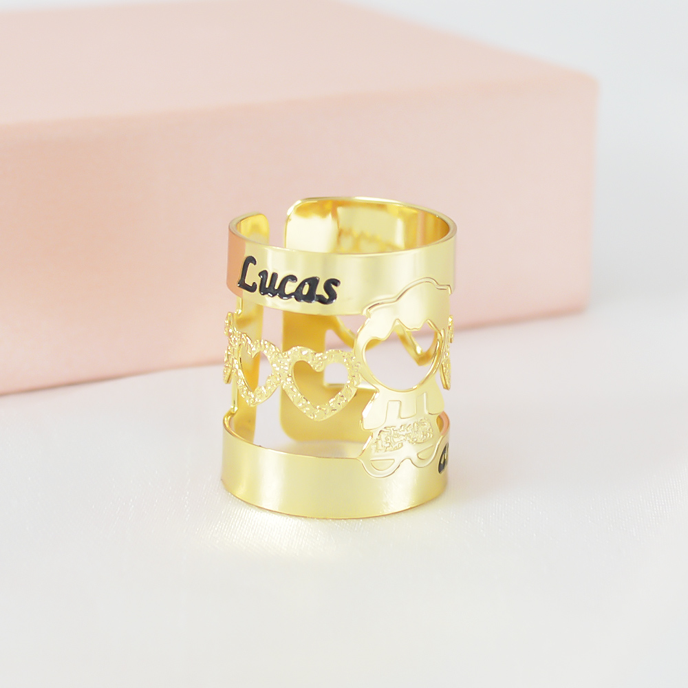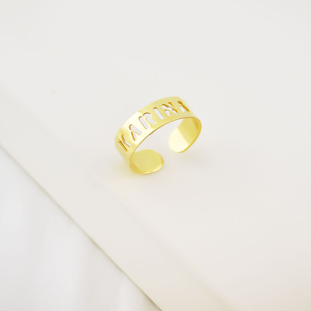 Anel Personalizado com Nome Vazado, Regulável, Banhado a Ouro 18k