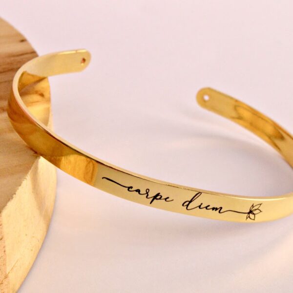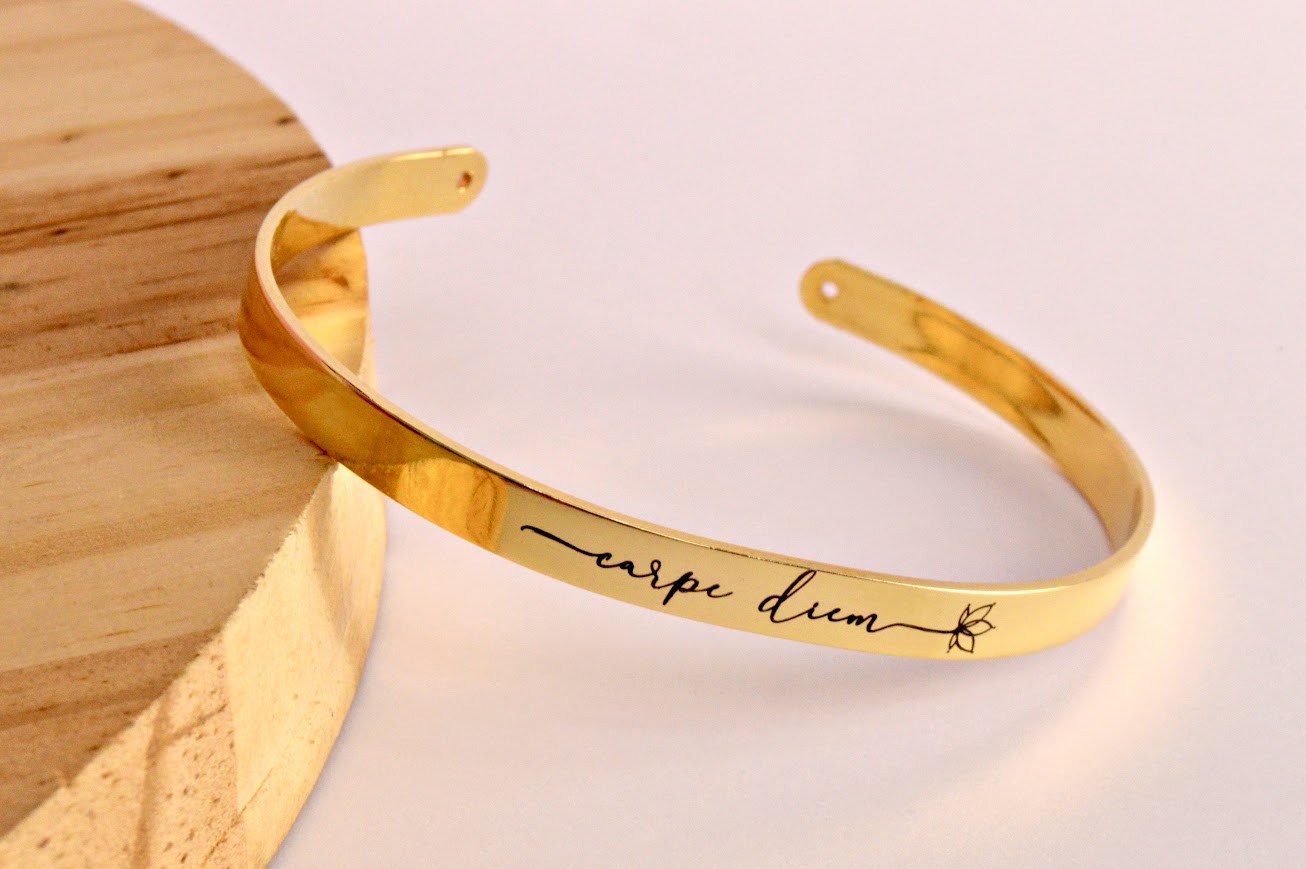 Bracelete Liso, Personalizado com Nome/Frase, Banhado a Ouro