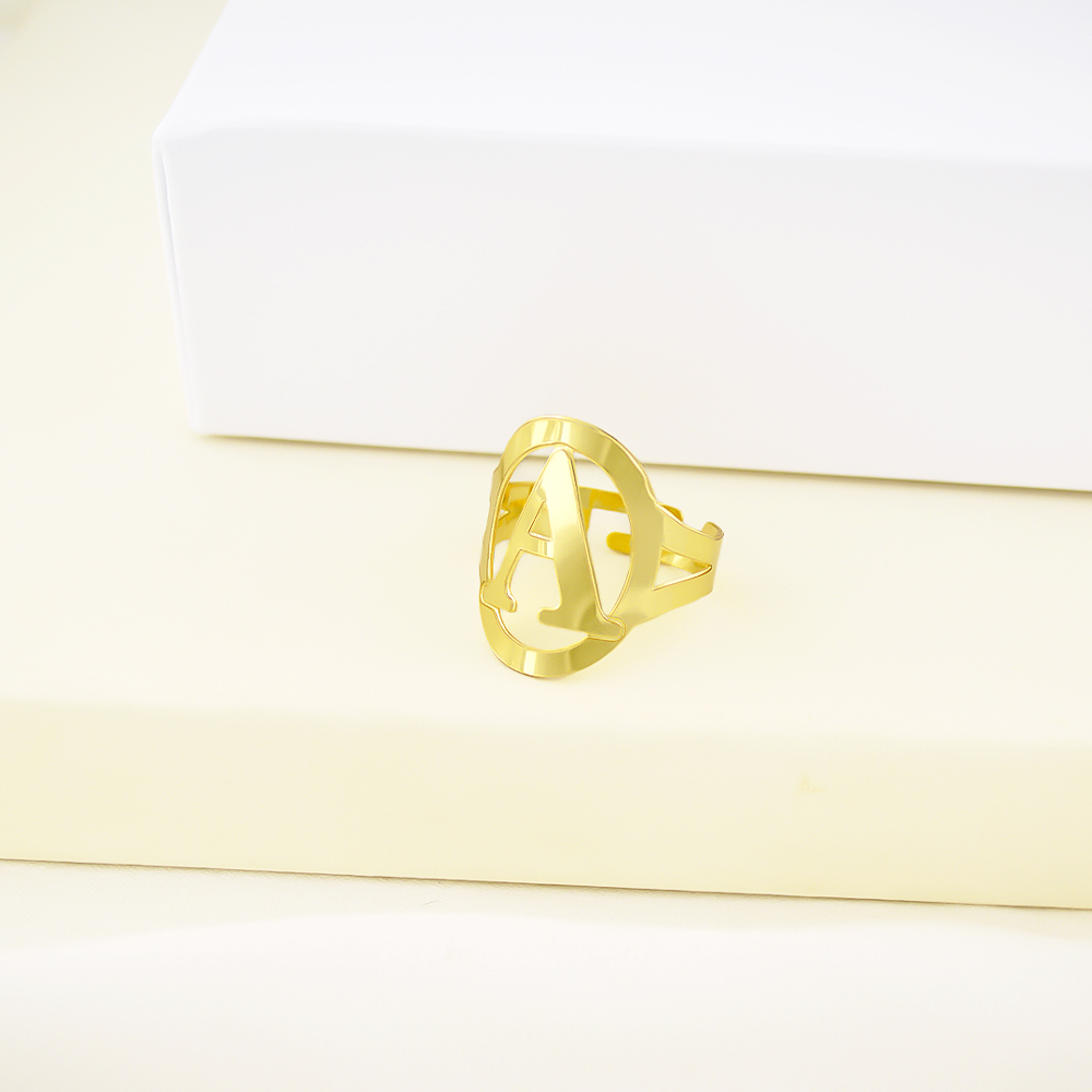 Anel de Letra Inicial, Regulável, Banhado a Ouro 18k