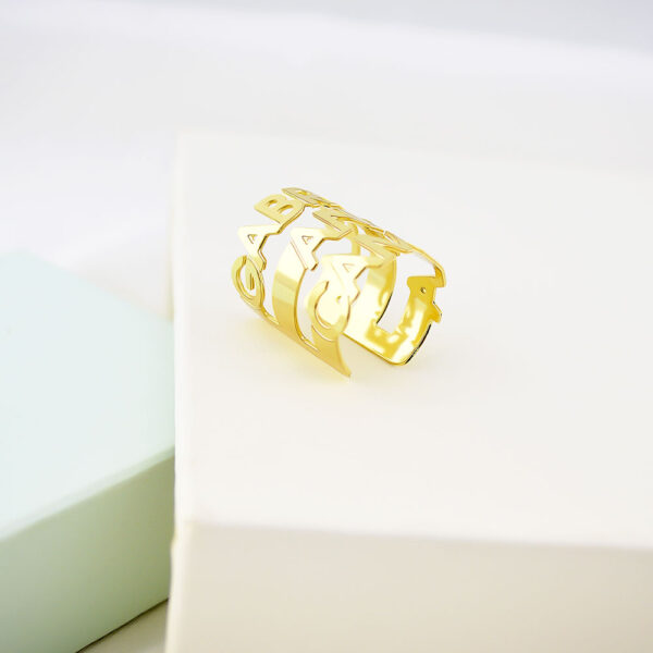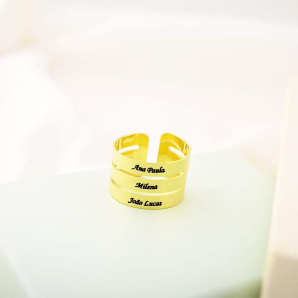 Anel de Nome Triplo Regulável, Personalizado, Banhado a Ouro