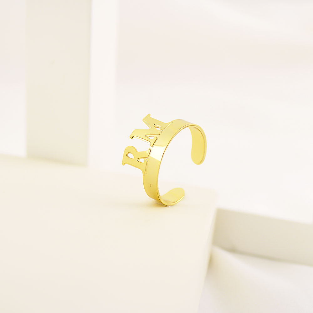 Anel de Iniciais Personalizado, Regulável, Banhado a Ouro