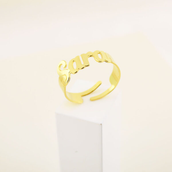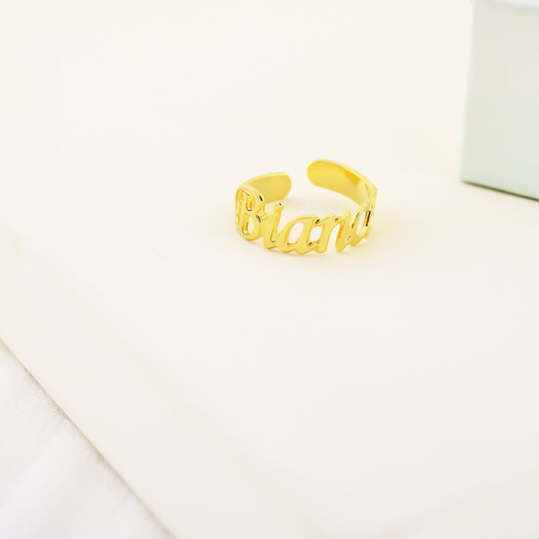 Anel de Nome Personalizado, Regulável, Banhado a Ouro 18k