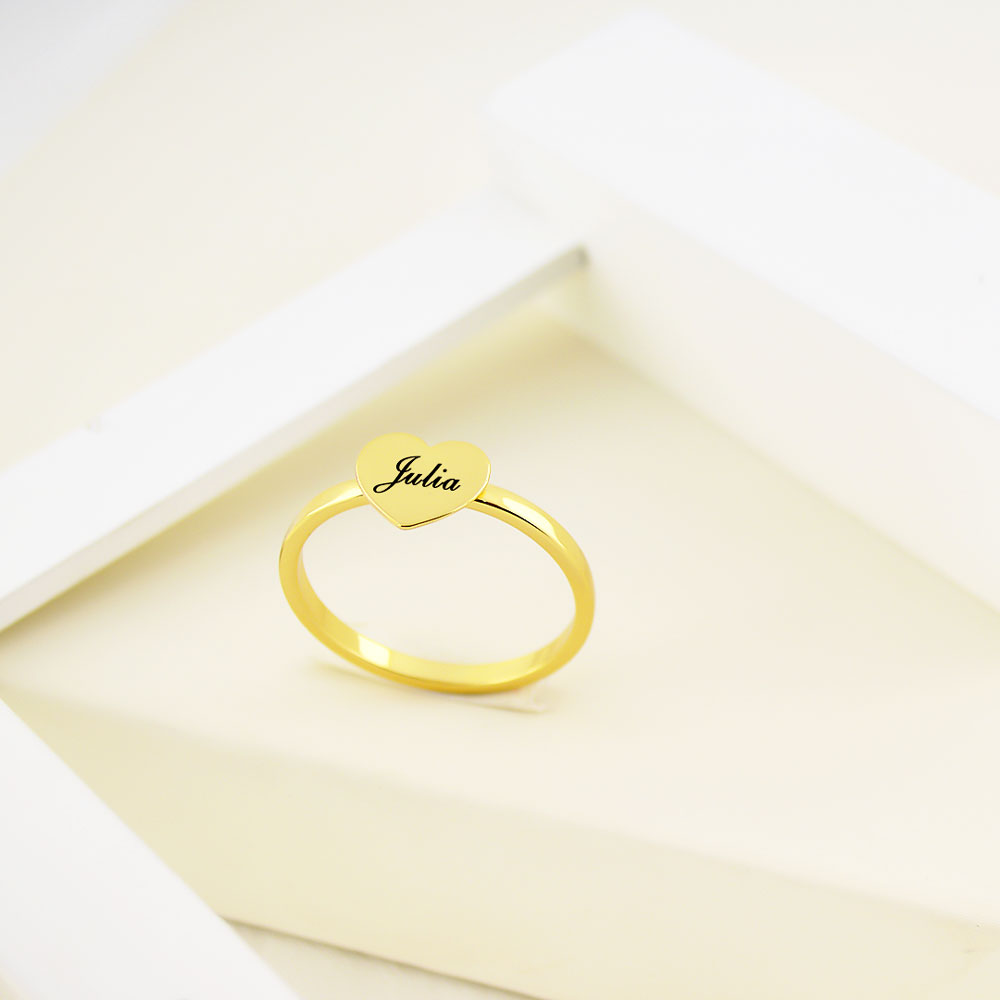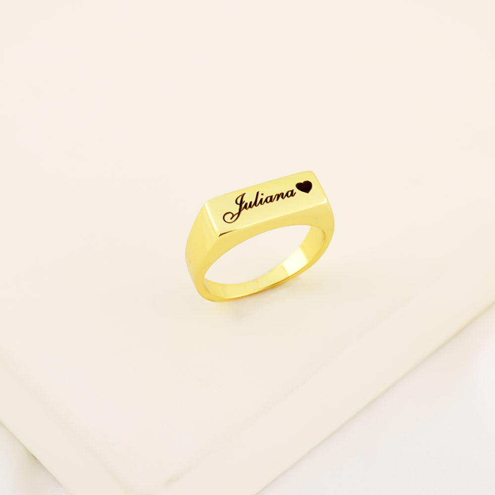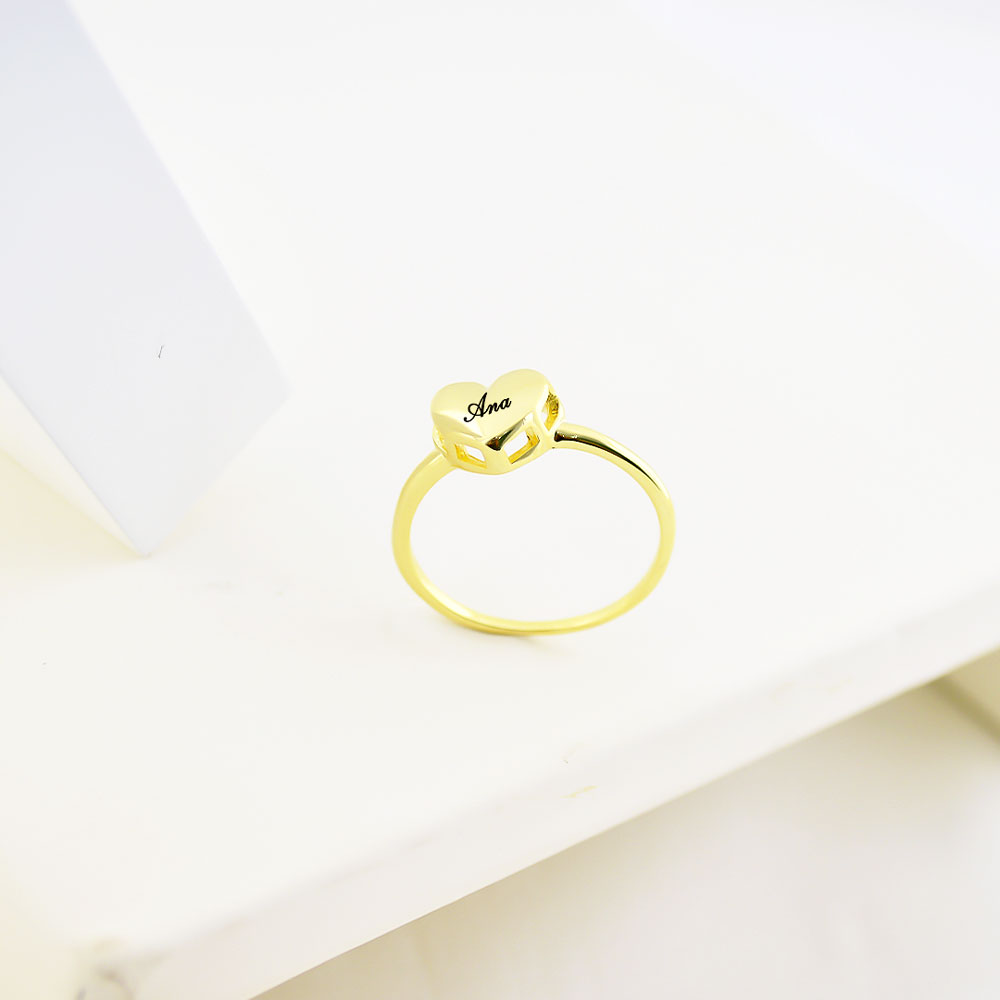 Anel de Coração, Personalizado com Nome, Banhado a Ouro