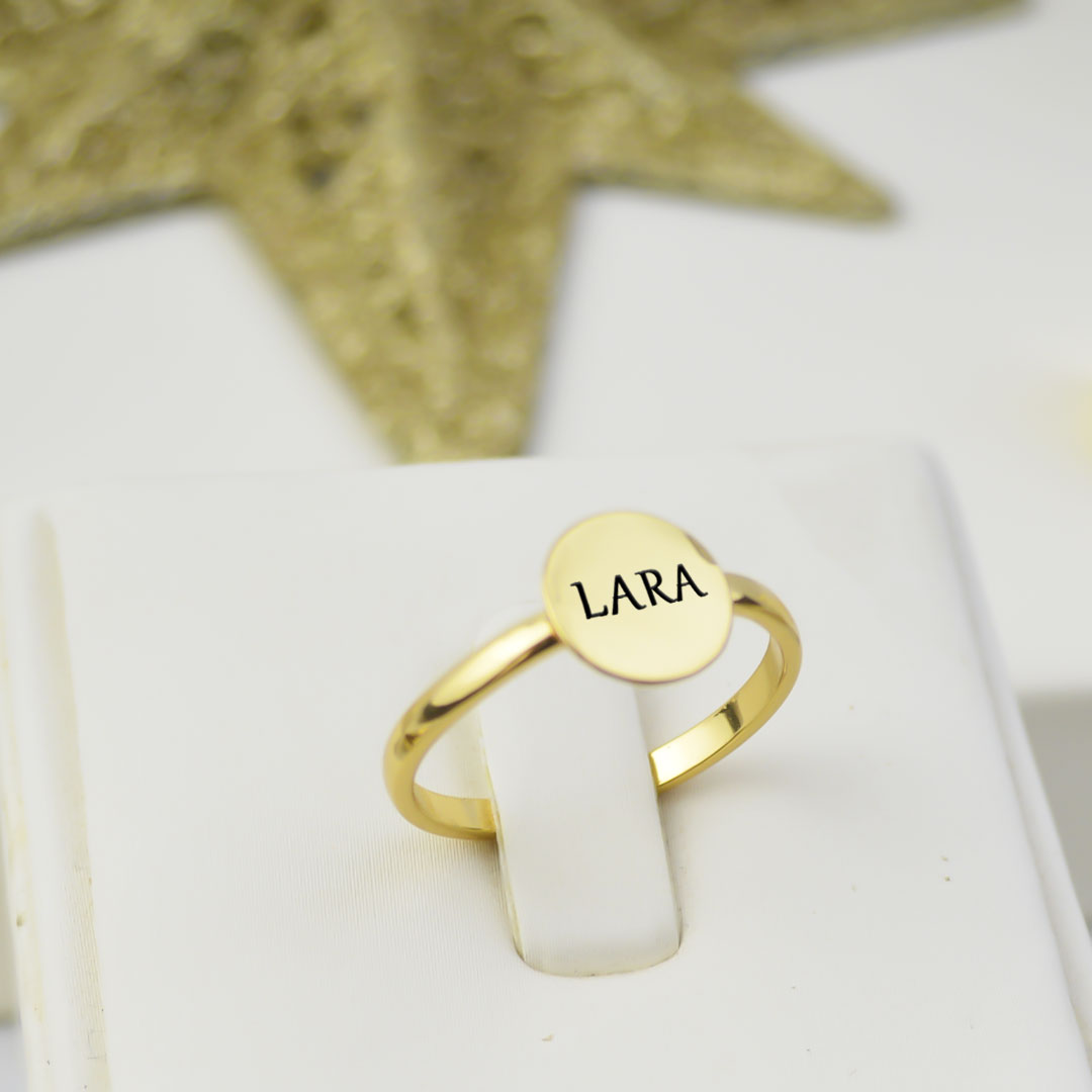 Anel Aro Redondo Personalizado, com Gravação, Banhado a Ouro