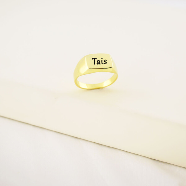 Anel Quadrado de Chapa, Personalizado, Banhado a Ouro